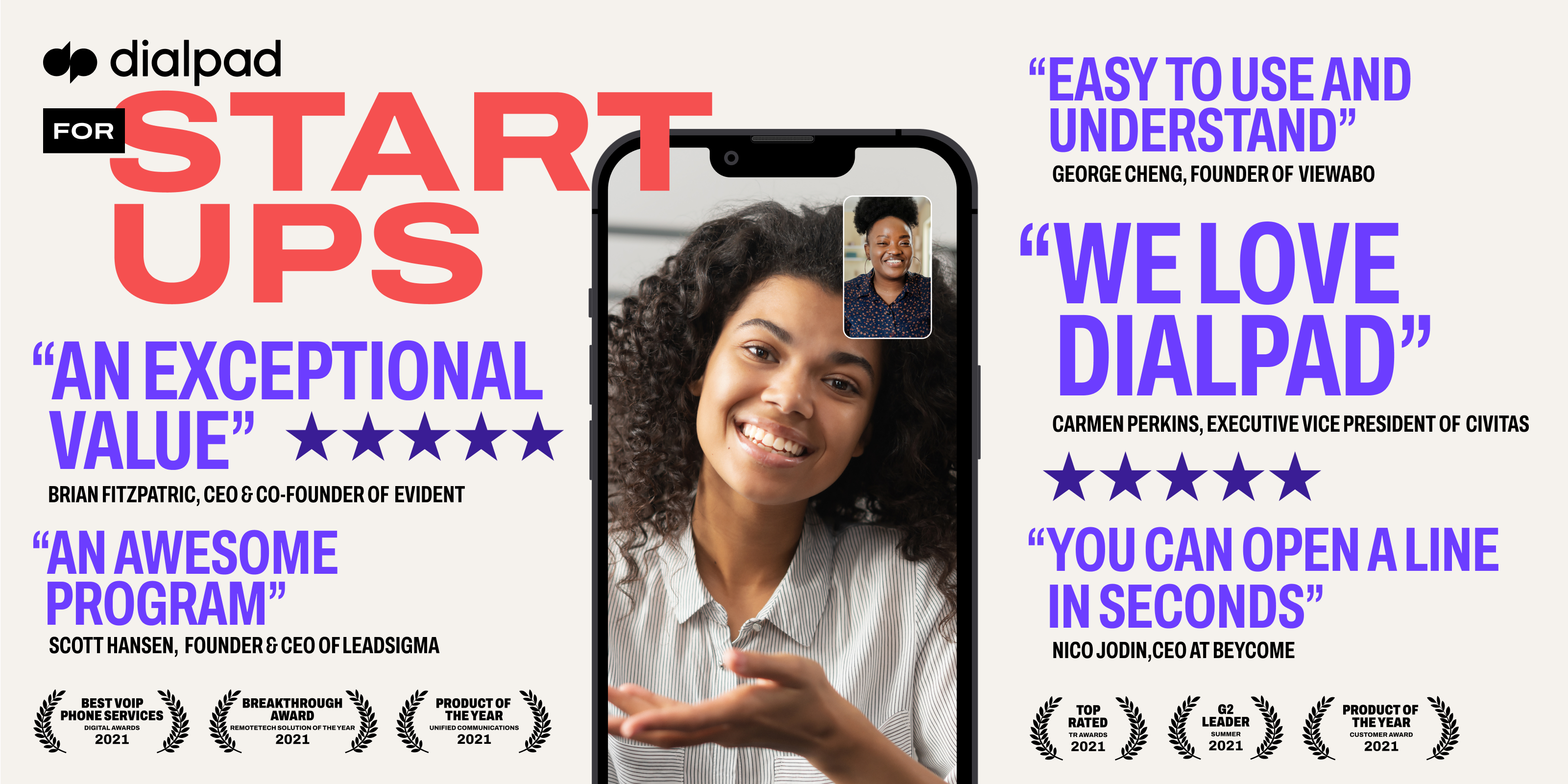 Dialpad for Startups offers 10 free lifelong business lines and video conferencing for qualifying companies. Learn more at dialpad.com/dialpad-for-startups/